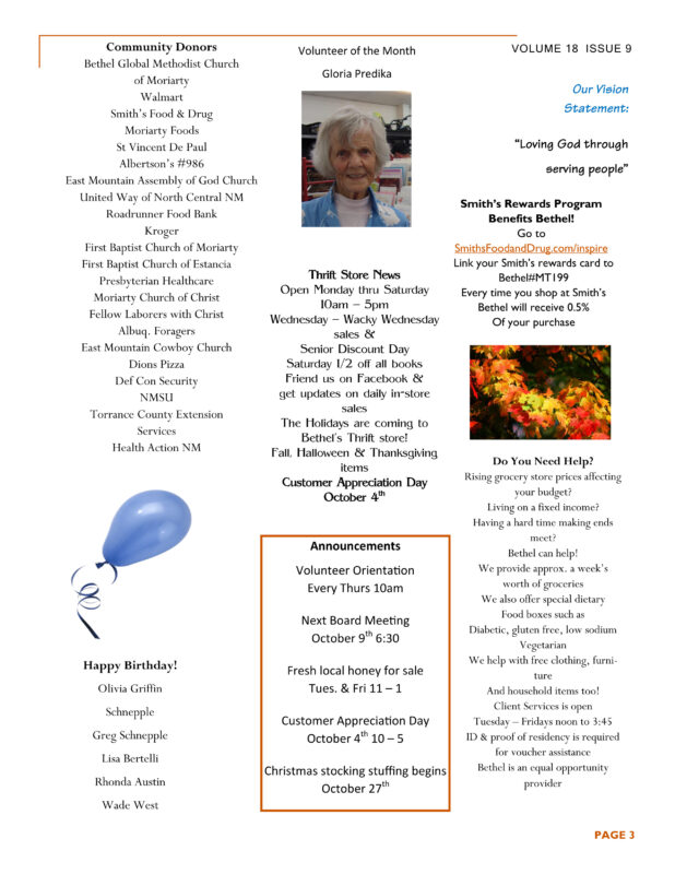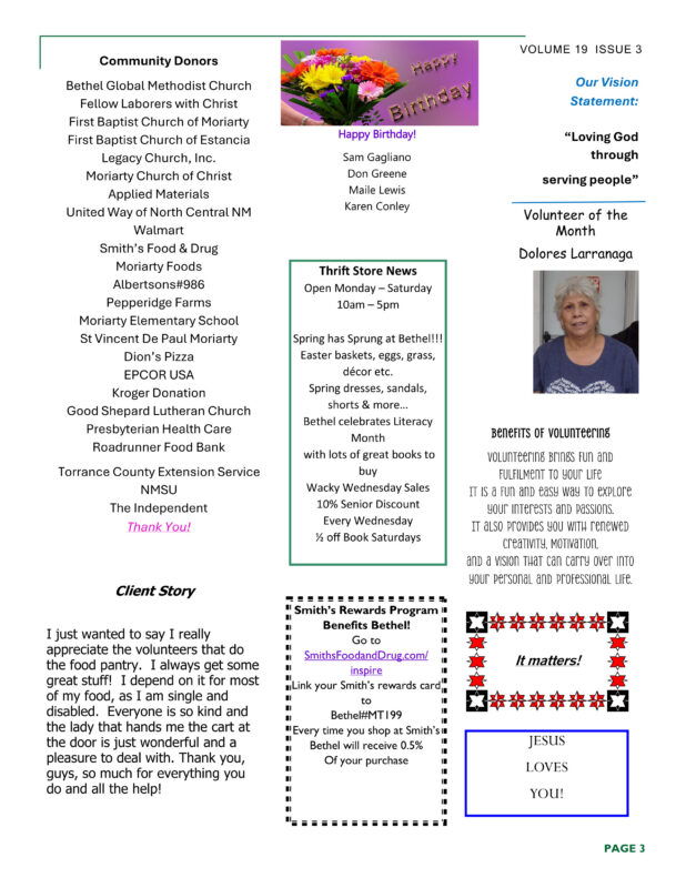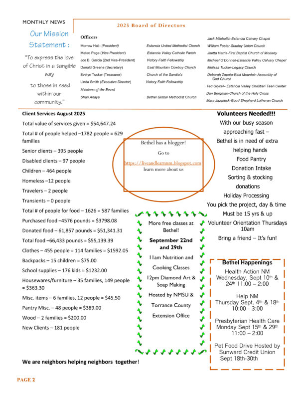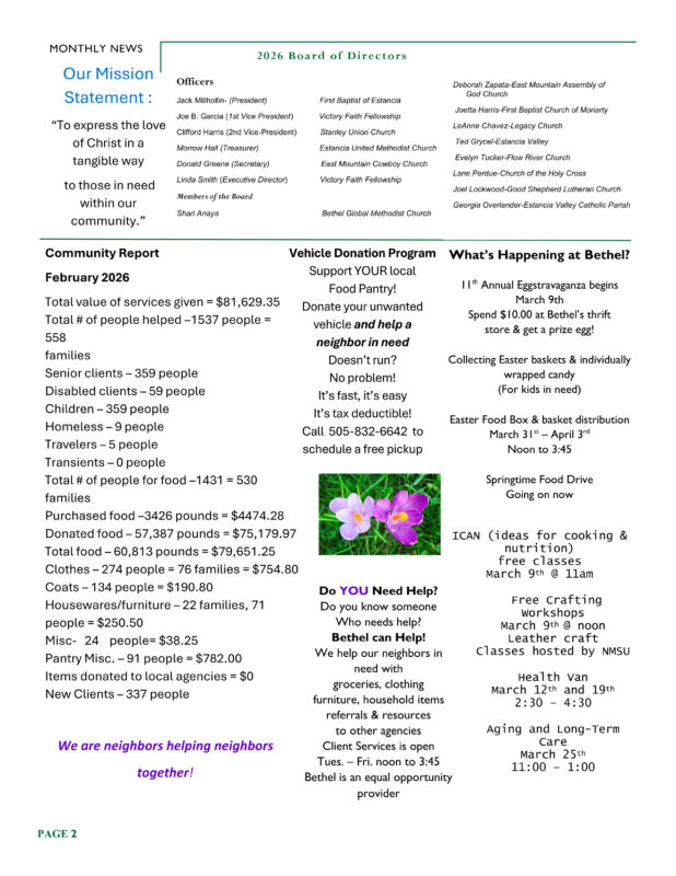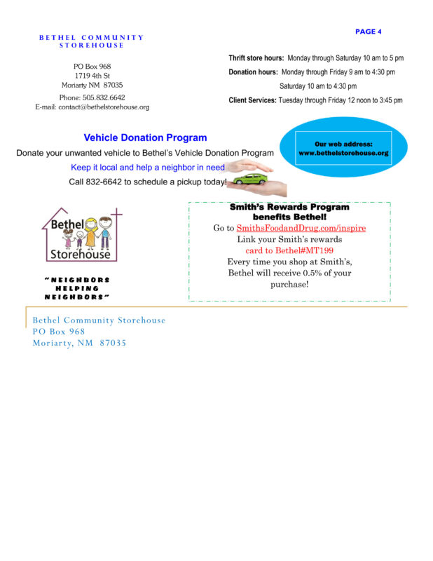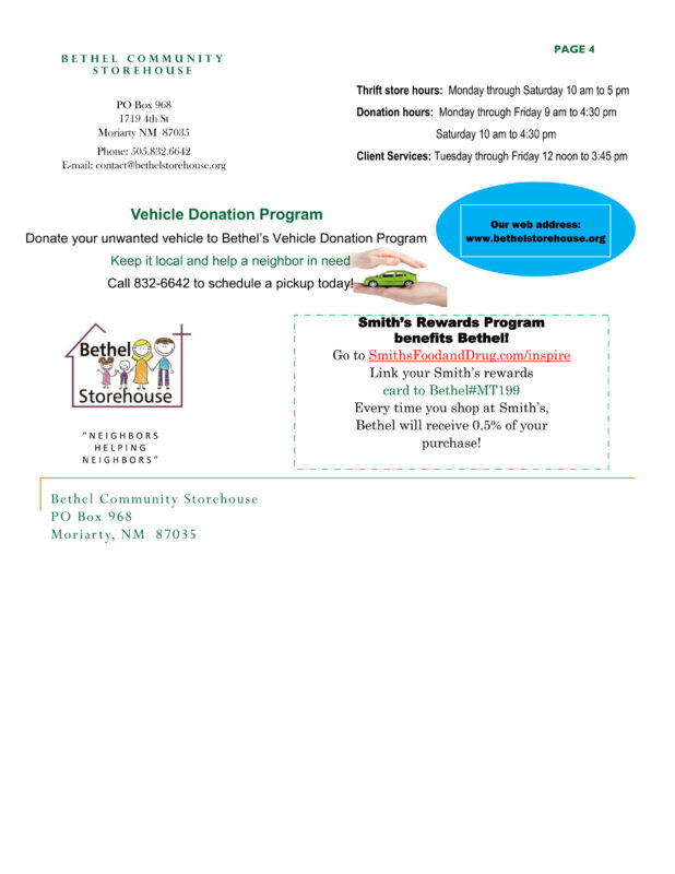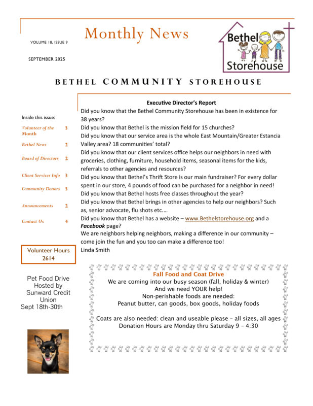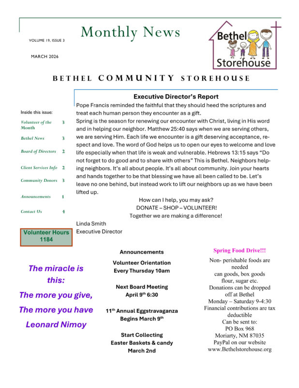 Stay up to date with Bethel Storehouse by reading our Newsletters. We offer useful information on how our mission is progressing, as well as services that are available to the community.